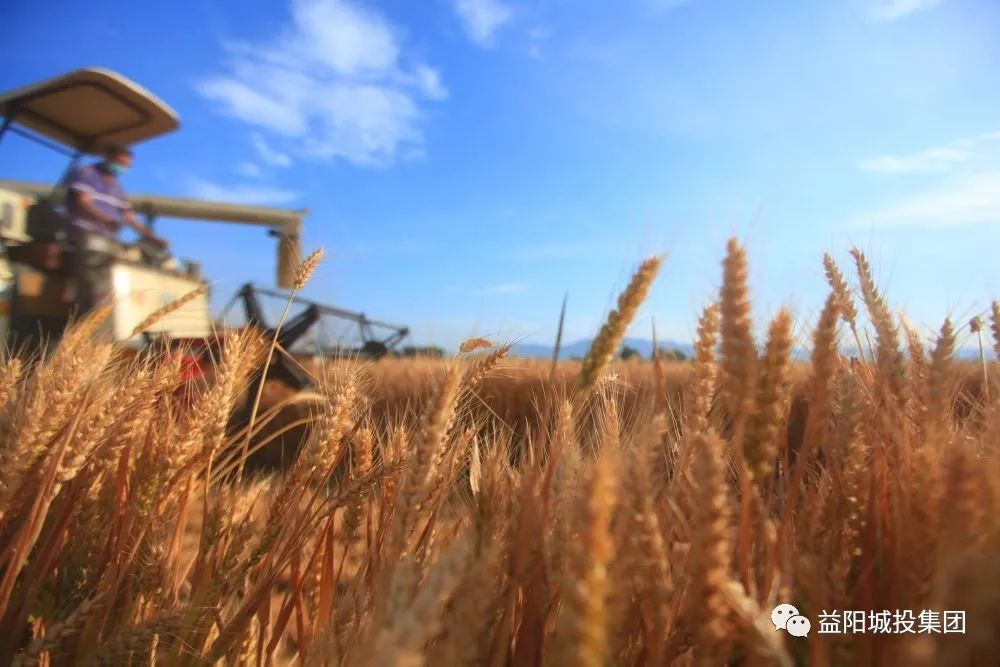 △收割機(jī)在山東省臨沂市平邑縣的麥田里收割小麥(2021年6月8日攝)。