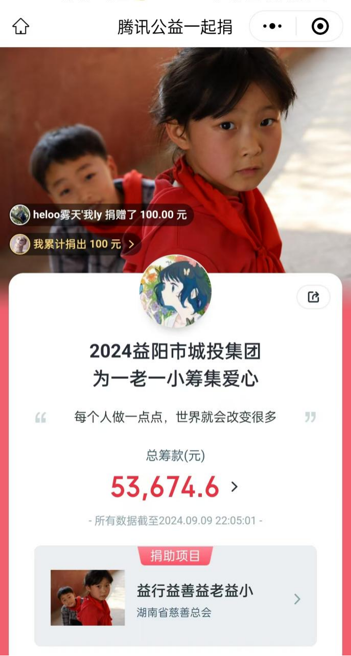 本著“人人參與、自覺自愿、鼓勵(lì)奉獻(xiàn)”的原則,在廣大干部職工的積極參與下,此次“慈善一日捐”活動(dòng),益陽市城投集團(tuán)共籌集善款53674.6元,累計(jì)捐贈(zèng)618人次,獲得騰訊99公益基金會(huì)提供的配捐資金共計(jì)6533.6元。此外,益陽市城投集團(tuán)也將額外捐贈(zèng)善款1萬元,用于益陽市“一老一小”項(xiàng)目建設(shè)。